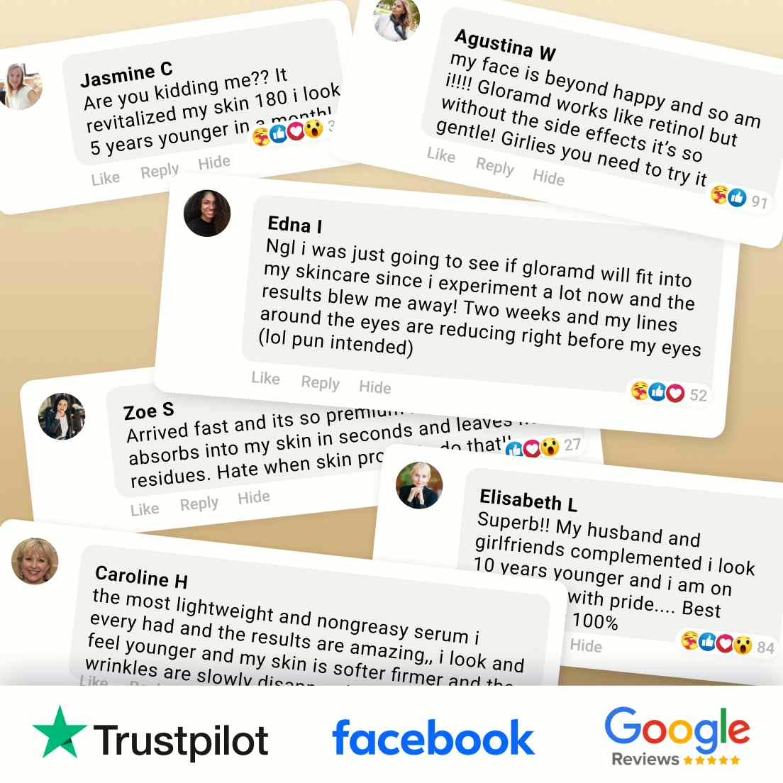 I work stressful hours and barely sleep, and it showed on my face. Aeloren actually brought my skin back to life. My fine lines look smoother and my skin tone is finally even.